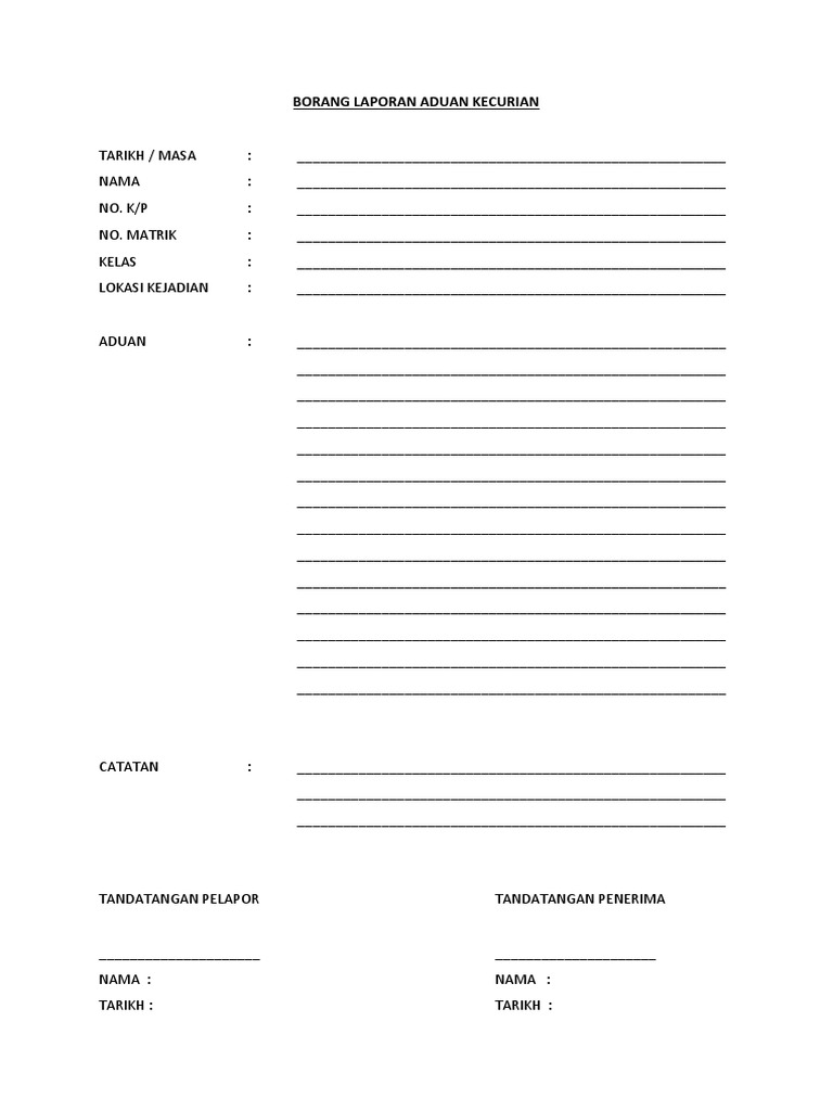 Contoh borang aduan pelajar. Semua aspek tersebut perlu dibangunkan secara menyeluruh. Borang aduan maklum balas pelanggan a. Contoh borang deklarasi murid untuk aktiviti luar.