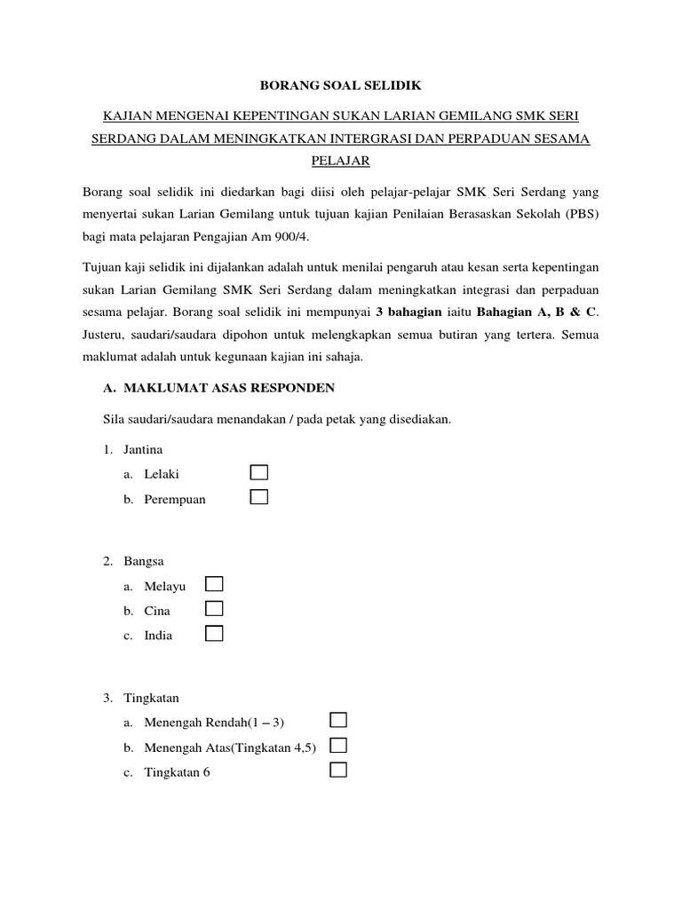 Anda bisa mendownload atau mencetak gambar atau foto borang soal selidik in english di bawah ini menggunakan printer. 0811- 2846 130. 342 Temu Bual Temu bual bersemuka digunakan dalam kajian ini untuk memahami secara.