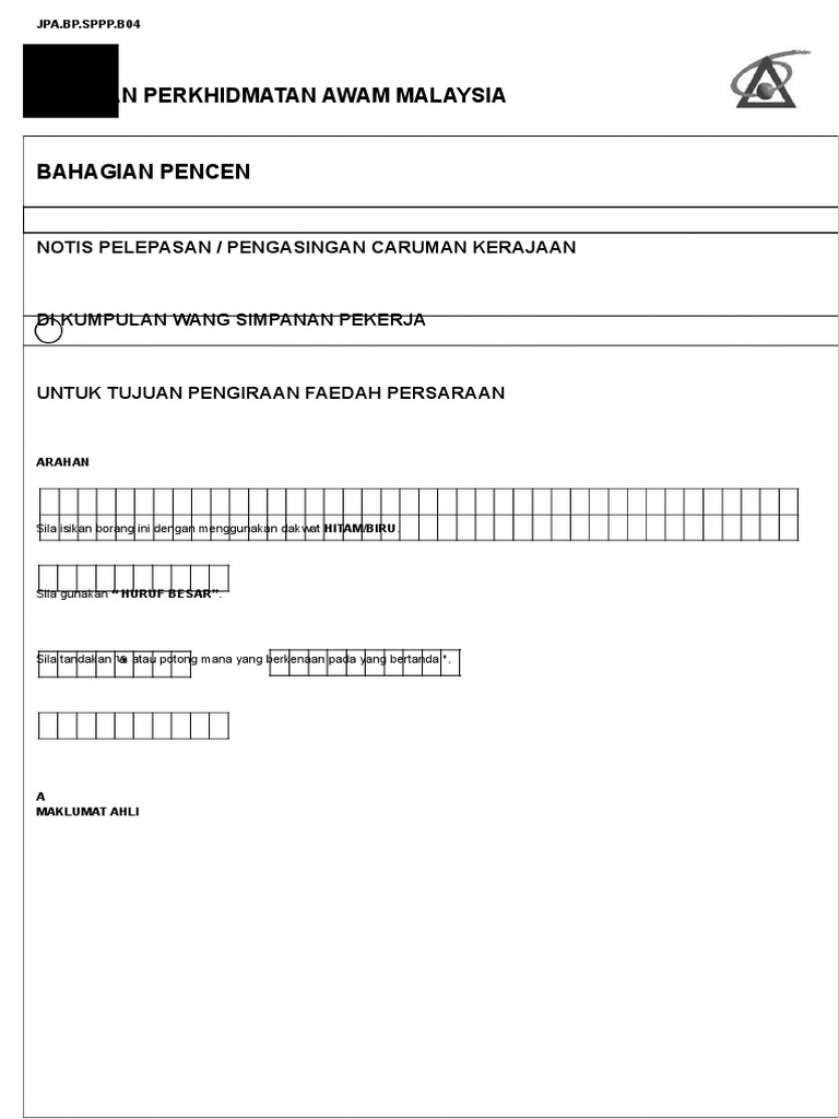 Borang ini hanya perlu diisi oleh pekerja warganegara Malaysia y ang tidak memilih skim KWSP. Spa Pahang Spa Pahang. Jabatan Perkhidmatan Awam Bahagian Pasca Perkhidmatan Aras 2-5 Blok C2 Kompleks C Kompleks Kerajaan Persekutuan 62510 Putrajaya Malaysia.